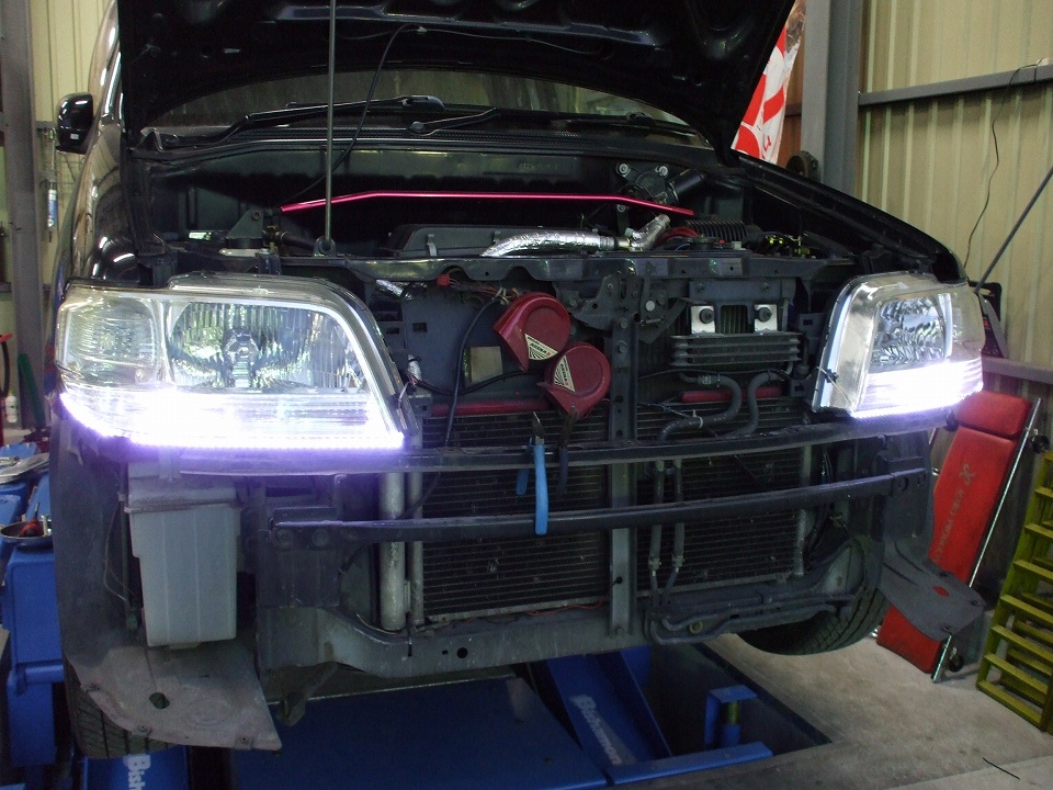 さて、こちらが本日の被験体。。。じゃなくてYさまのキューブです。このお車を、テープLEDを使い、新型AUDIのLEDポジション風にモディファイいたします。